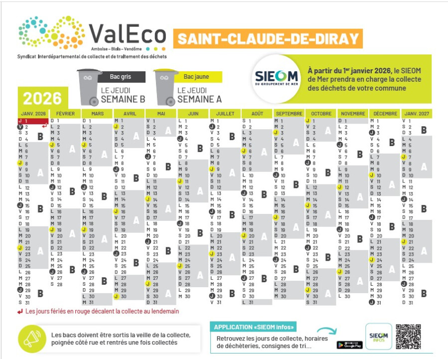 â ïž Jour fĂ©riĂ© du 1er janvier : la collecte du jeudi 1er est dĂ©calĂ©e au vendredi 2 janvier ( sortir le bac le jeudi soir).