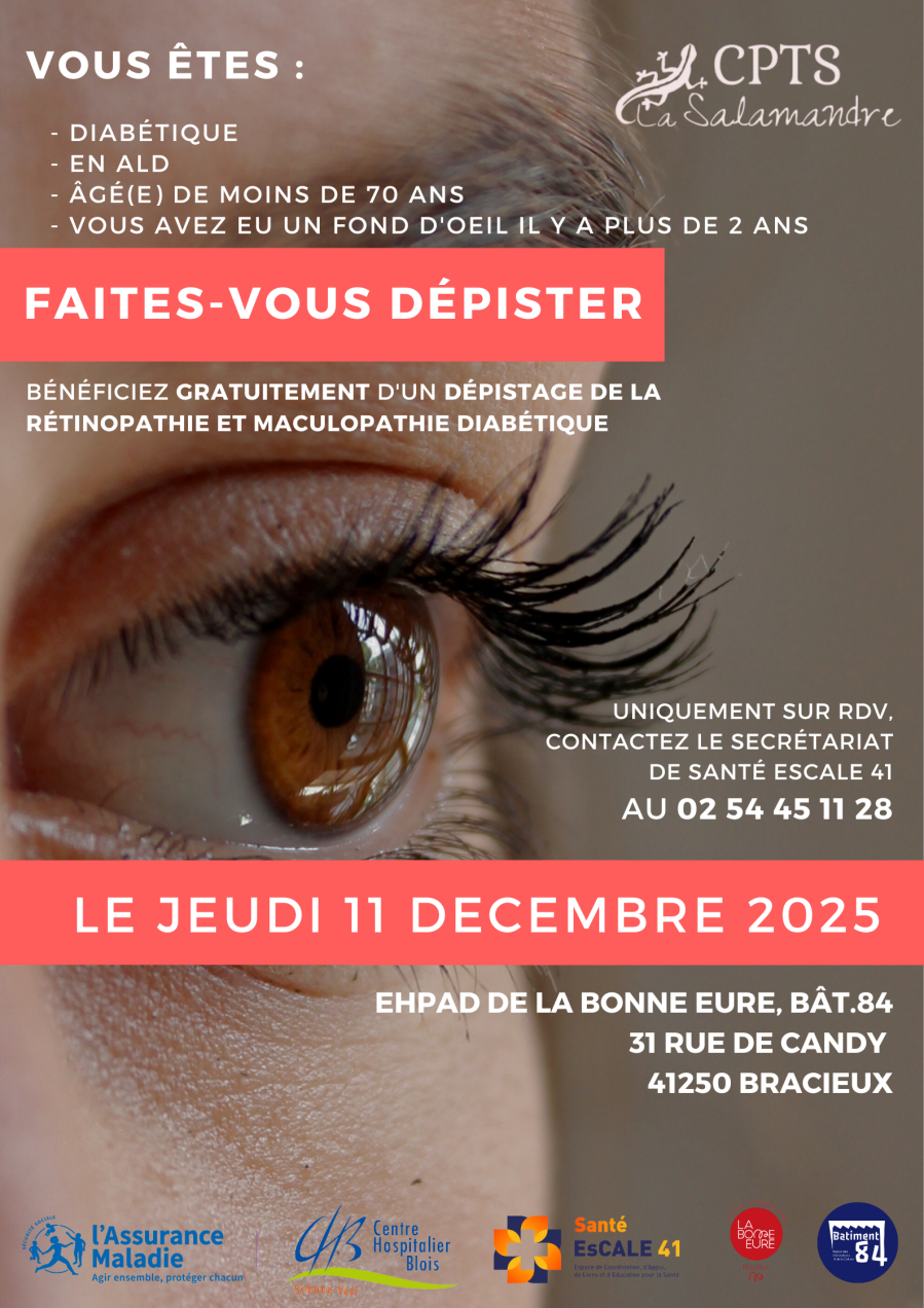 La CPTS La Salamandre organise un dépistage gratuit de la rétinopathie et maculopathie diabétique.