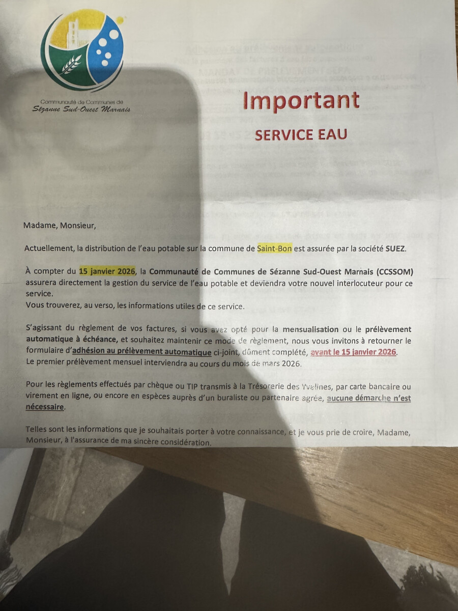 Certains foyers d'Esternay ont reçu par erreur un courrier relatif aux foyers de la commune de Saint Bon.