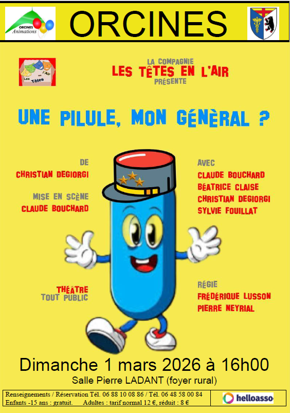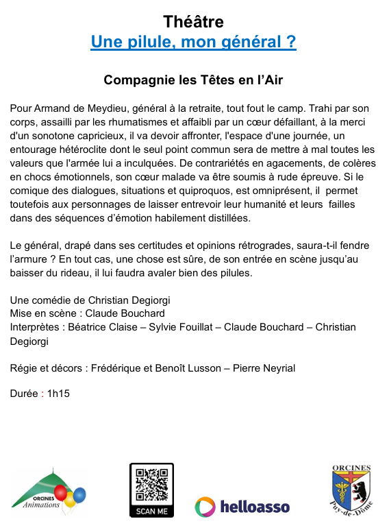 Réservations sur HelloAsso à l'adresse : https://www.helloasso.com/associations/orcines-animations/evenements/theatre
