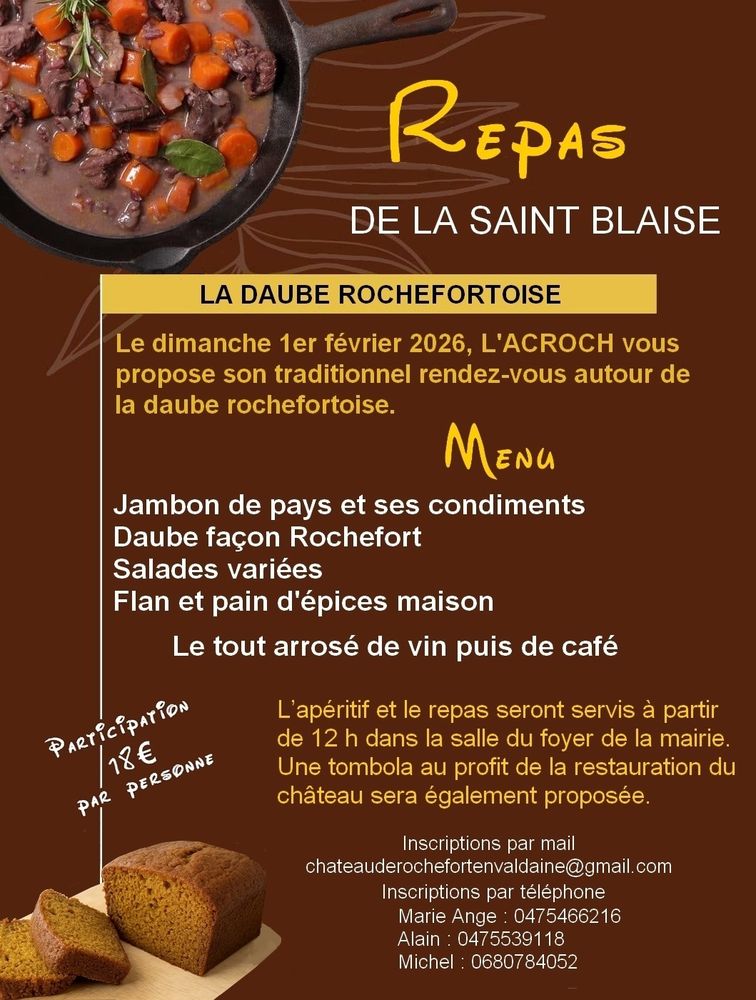 Rendez-vous dimanche 1er février 2026 pour le traditionnel repas autour de la daube façon Rochefort.