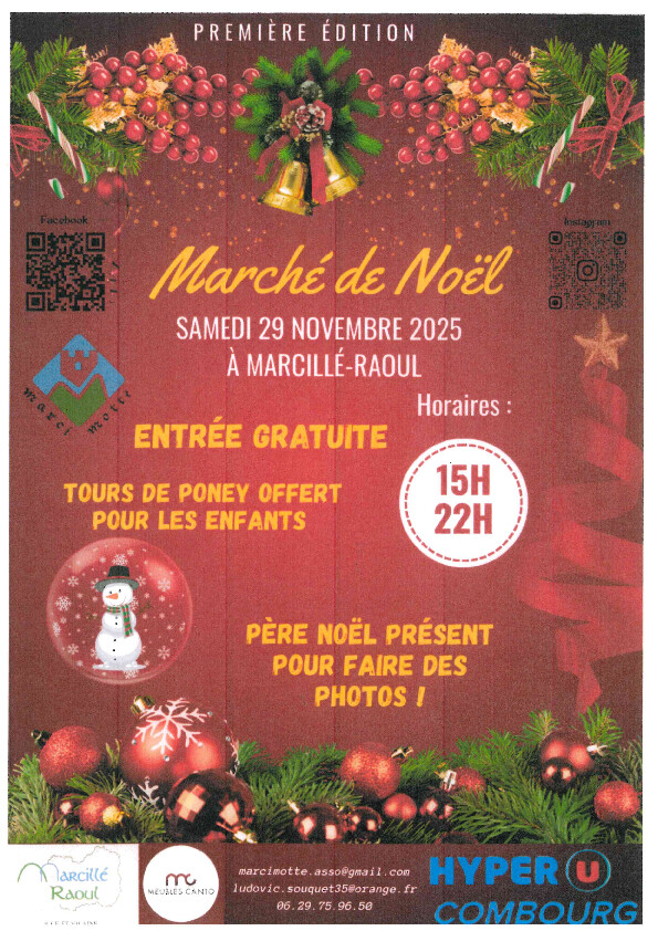 le 29 novembre au marché de Noël de Marcillé Raoul, de 15h à 22h.