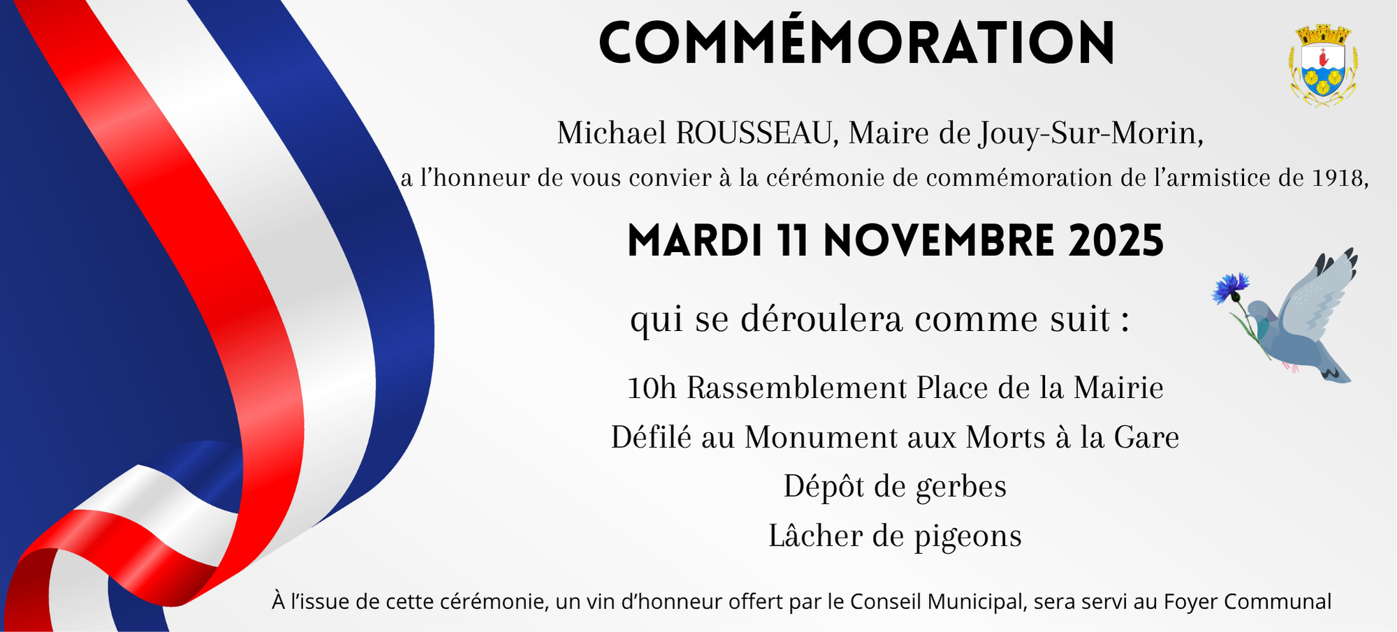 Vous êtes invités à participer à la cérémonie de commémoration de l’Armistice de 1918,