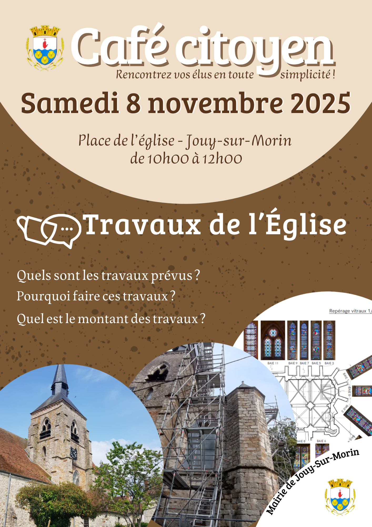 ➡️ À compter d’aujourd’hui et jusqu’à la période de Noël, la cloche de l’église sera mise à l’arrêt. Cette mesure temporaire vise à assurer la sécurité des compagnons intervenant sur la couverture et le clocher.