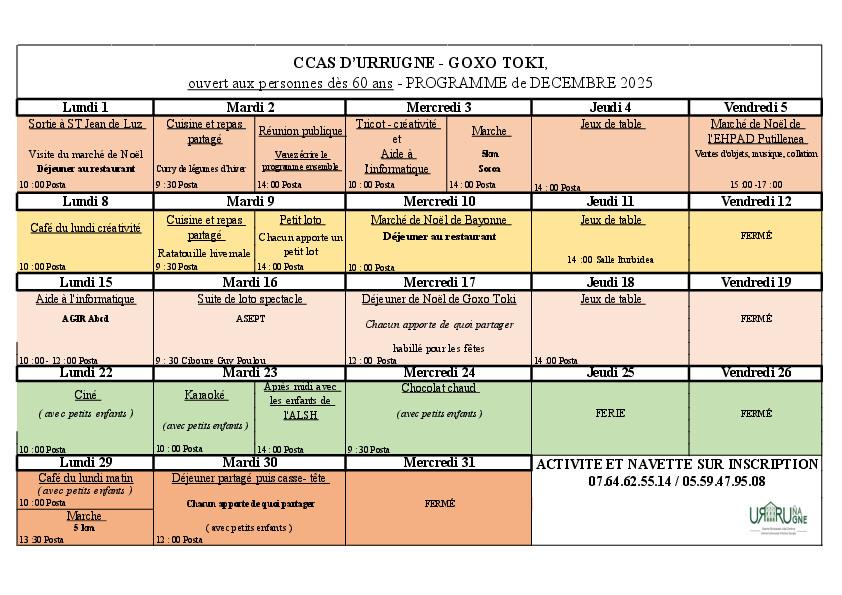- Pour Noël : PLusieurs sorties, des rencontres avec les enfants de l'accueil de loisirs de Socoa ainsi que notre déjeuner de Noël pour les adhérents de Goxo Toki