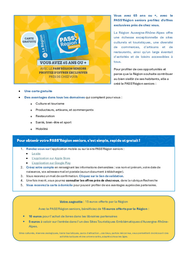 La Région Auvergne-Rhône-Alpes possède une offre de sites culturels et touristiques, de commerces, d'artisans, de restaurants, ainsi qu'un large éventail d'activités et de loisirs accessibles à tous.