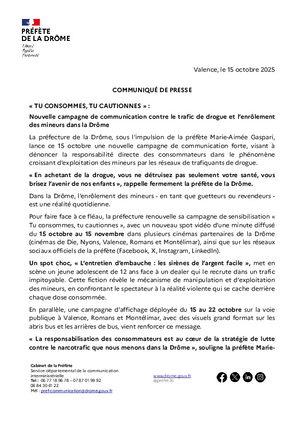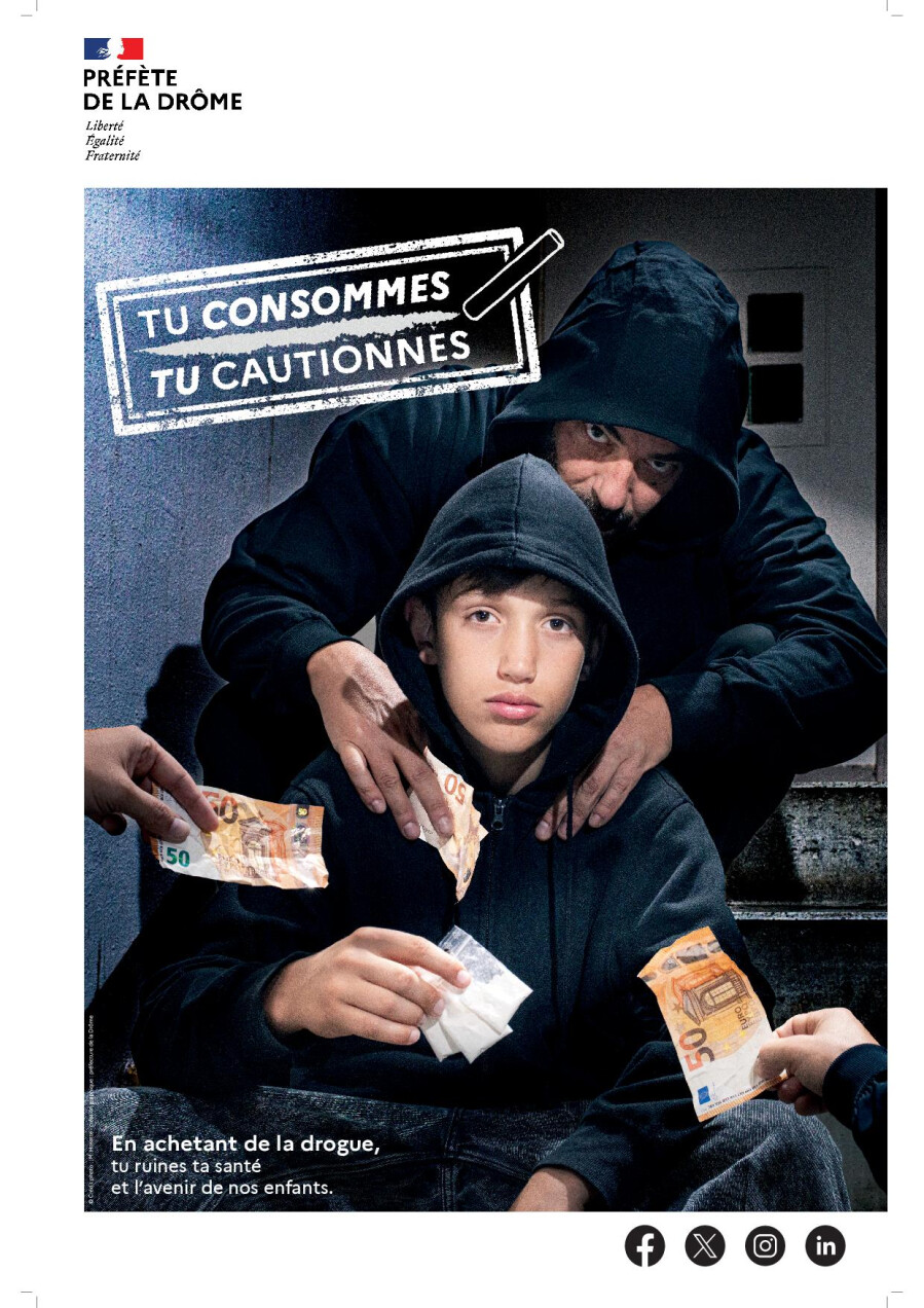 Campagne départementale « Tu consommes, tu cautionnes » visant à sensibiliser la population à la responsabilité des consommateurs dans le financement du trafic de stupéfiants et l’exploitation des mineurs