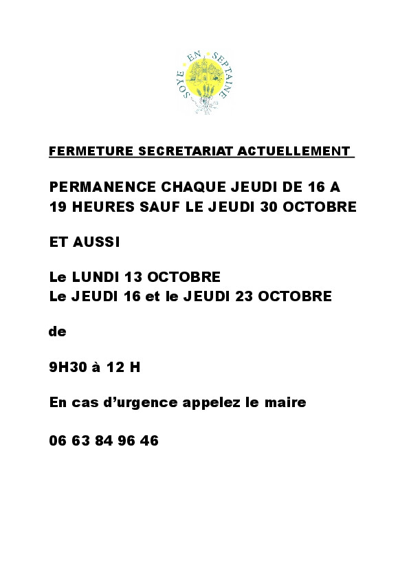 Compte tenu de l'absence de la secrétaire, le maire assurera une permanence