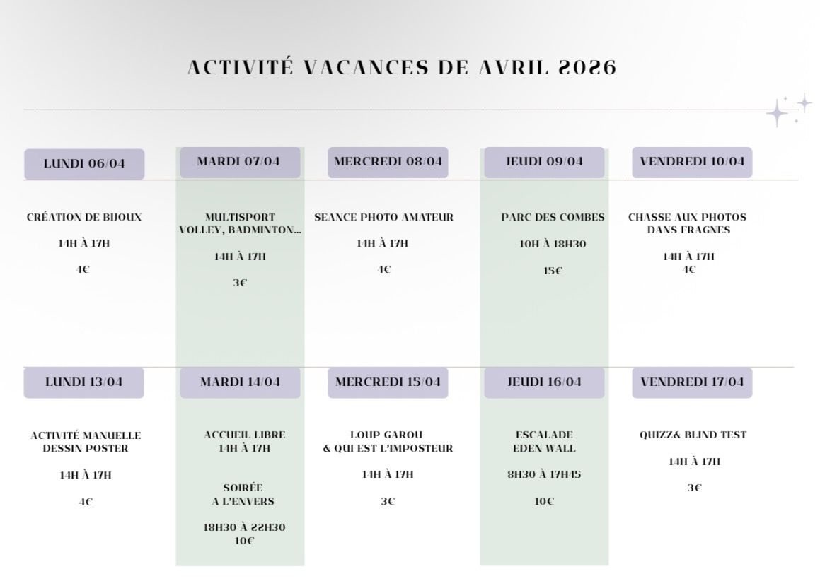• Approfondissement : du 06 au 11 avril – Création de jeux et nouvelles activités