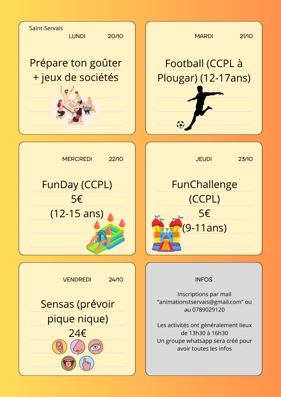 MARDI 28 et MERCREDI 29 OCTOBRE